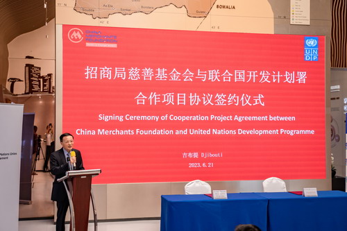 2023年6月21日,驻吉布提大使胡斌出席招商局集团慈善基金会与联合国开发计划署慈善合作项目签约仪式,见证双方签约并致辞。招商局集团副总经理冯波鸣、总经理助理李亚东、联合国开发计划署驻吉副代表奥利维耶等出席仪式。
