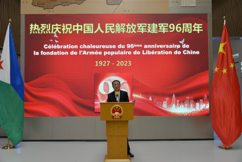 2023年7月26日,驻吉布提大使胡斌出席使馆举办的庆祝建军96周年招待会。吉军政代表及社会各界人士,驻吉美法日意等国基地负责人,我保障基地司令、政委及官兵代表、在吉中资机构人员等约150人出席。