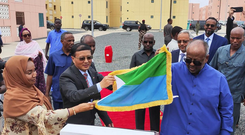 驻吉布提大使胡斌陪同吉总统盖莱出席援吉500套社会保障房项目揭幕仪式