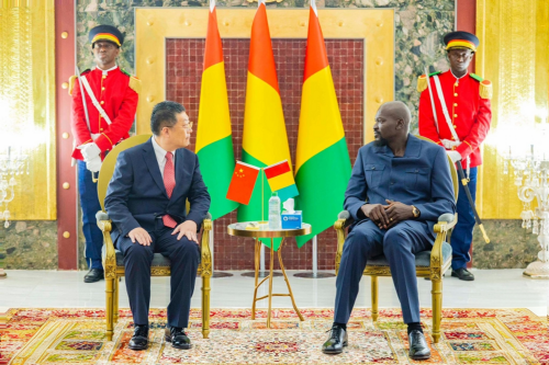 2025年10月10日,驻几内亚大使孙勇向几内亚总统敦布亚递交国书。几外长库亚特等在座。