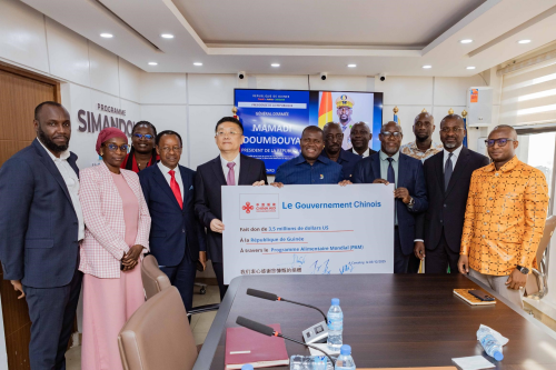 2025年12月3日,驻几内亚大使孙勇出席中国政府通过世界粮食计划署向几内亚提供粮食援助接收仪式。几合作部长纳贝、世界粮食署驻几代表乌森古穆雷米等出席。