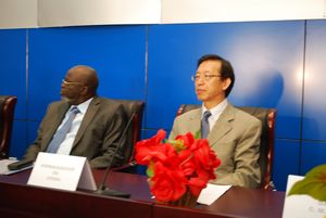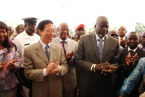 | 几比政府办公大楼 | 李大使与几比总统为移交仪式剪彩 |