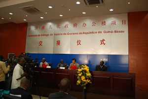 2010年11月10日,中国援建几内亚比绍政府办公大楼项目隆重举行交接仪式。我驻几比大使李宝钧和几比总统萨尼亚共同出席。几比总理戈梅斯、国民议会议长佩雷拉、高法院长蒙泰罗、政府全体内阁成员、军队高层领导人、项目承建方中方代表、驻几比外国使节和国际组织代表以及几比各界名流、媒体记者500多人参加。