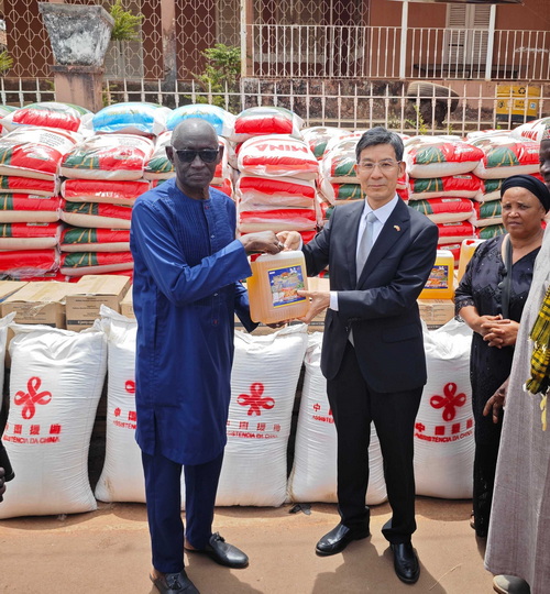 2026年3月26日,驻几内亚比绍大使杨仁火赴几比巴法塔省,出席中国使馆向巴法塔省火灾灾民捐赠慰问物资仪式,并与省长卡萨马共同向灾民代表分发物资。