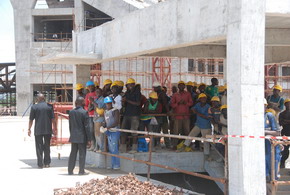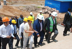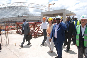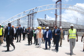 李大使欢迎阿里总统百忙中再次前来视察体育场项目,表示,中方高度重视中加体育场建设,承建项目企业克服重重困难、加紧施工,在落实工程进度的同时,高度重视工程质量。希望加方积极加以配合,尽快解决项目遇到的实际困难,尽早启动和完成加方配套工程,以保证非洲杯的相关准备工作顺利进行。