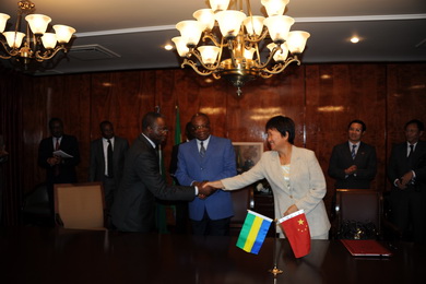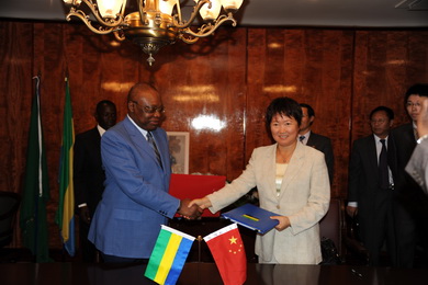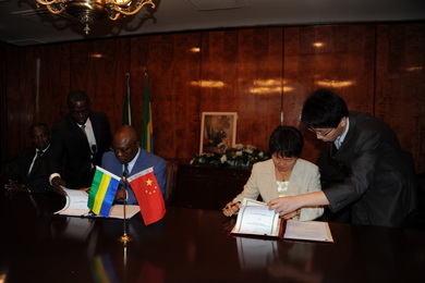 2011年7月28日,驻加蓬大使李福顺与加蓬外长通吉共同签署中国派遣医疗队赴加蓬工作的议定书,加卫生部长荣杜出席签字仪式。
