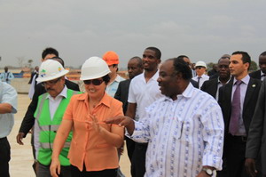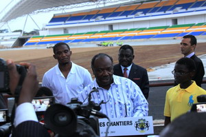 2011年8月11日,加蓬总统阿里·邦戈在加基础设施部长恩祖巴、喀麦隆足球明星埃托奥等陪同下再次视察利伯维尔多处2012年非洲杯项目工地,我援建的中加友谊体育场成为阿里总统本次视察的最后一站。驻加蓬大使李福顺迎接并陪同阿里总统参观了体育场工地。