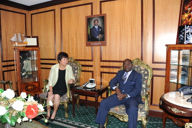 李大使对加蓬发展所取得的成就及顺利举办“非洲杯”表示祝贺。李大使感谢姆巴对她本人工作的支持,表示,任期内中加关系稳步发展,各领域交流合作更加密切,中方愿继续积极参与“新兴加蓬”的建设,相信在中加双方的共同努力下,两国关系将不断向前迈进。