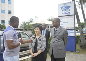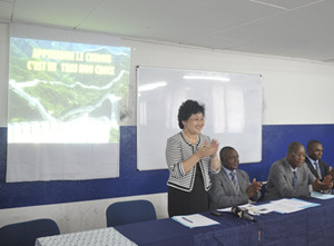 2014年11月19日,驻加蓬大使夫人杨宝珍在利伯维尔法美管理学院举行报告会,该校校长孔代博士携近百名师生参加。