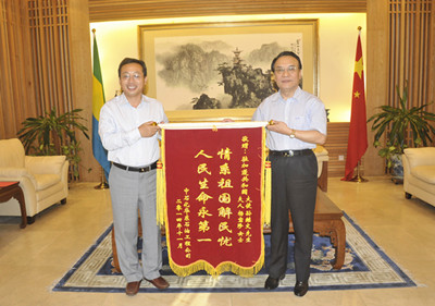 何总经理还就驻加蓬使馆积极组织、成功救治该公司病危员工一事向孙大使表示感谢。今年9月,中石化国际石油工程公司向驻加蓬大使馆求助,称公司一名员工结束在加工作回国后不久疑似患非洲热带病,病情危急。驻加蓬使馆立即启动应急机制,多方联系当地医生和国内热带病专家进行远程会诊,确诊为我国首例输入性锥虫病病例。此后,驻加蓬使馆又积极协调世界卫生组织(OMS)驻加蓬办事处、驻日内瓦总部、驻北京办事处等多家机构,及时将特效药品空运至北京,再由专人转送江苏,通过及时治疗使患者转危为安。何总经理特代表公司向中国大使馆表示感谢,并转交公司的表扬信、锦旗以及康复患者亲笔书写的感谢信。