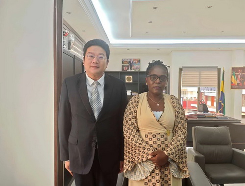 2025年9月15日,驻加蓬大使周平拜会加蓬青年、体育、文化繁荣、艺术和社会组织部长穆朗吉,双方就两国文化等领域合作交换意见。