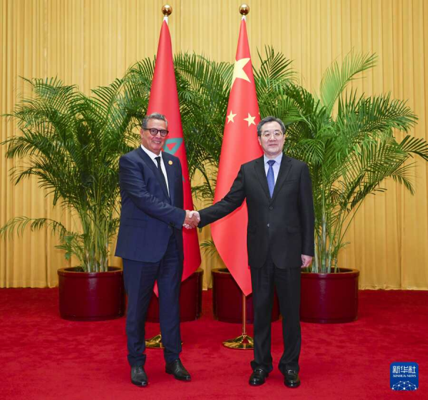 在会见阿赫努什时,丁薛祥表示,在习近平主席和穆罕默德六世国王战略引领下,中摩政治互信不断巩固,务实合作成效显著。中方愿同摩方携手努力,落实好两国元首重要共识和论坛峰会成果,深化基础设施、经贸投资、文教旅游等领域合作,开辟中摩战略伙伴关系广阔前景,共筑新时代全天候中非命运共同体。