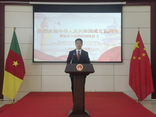 2025年9月25日,驻喀麦隆使馆举行庆祝中华人民共和国成立76周年暨驻喀大使徐永到任招待会。喀政府代表、对外关系部部长级代表姆巴宇,国防部长阿索莫,劳动和社会保障部长奥沃纳,经济计划和领土整治部长奥斯曼,国民议会副议长迪奥多尔等政要及各界友人,各国驻喀使节、国际组织驻喀代表等200余人出席。