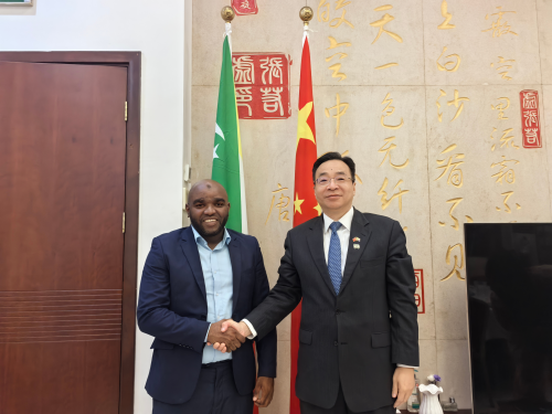 2025年10月28日,驻科摩罗大使黄峥会见科摩罗国家公共工程与建筑实验室主任索巴阿迪·阿马达。