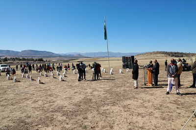 2020年7月30日,应莱索托首相马乔罗邀请,驻莱索托大使雷克中赴莫赫勒斯胡克地区出席由莱首相办公室举办的中国使馆对莱粮食援助配发仪式。