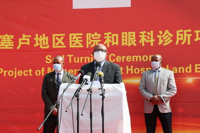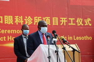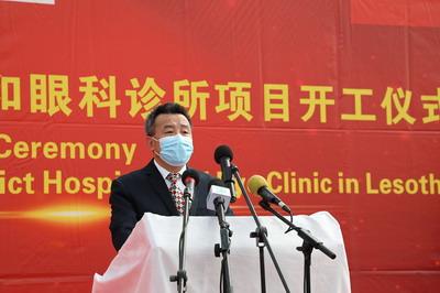2021年2月24日,驻莱索托大使雷克中出席中国援莱马塞卢地区医院及眼科诊所项目开工仪式。莱首相马乔罗、副首相莫霍图和卫生、发展计划、公共工程、水务、青年及体育等部门内阁大臣、国会议员、相关部门高级官员及世界卫生组织驻莱代表等出席。