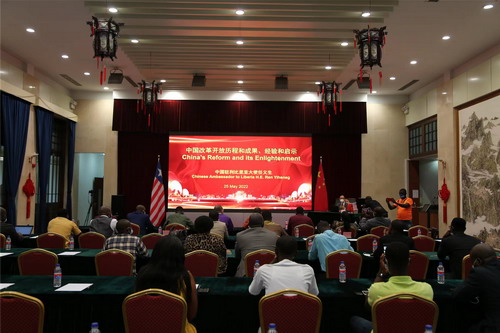 2022年5月25日,驻利比里亚大使任义生应利财政部邀请,为利政府官员举办题为“中国改革开放的成功经验与启示”讲座。利公共工程部副部长约瑟夫、非洲同行评议机制执行总监塞尔玛、利执政党民主变革联盟外交事务主席威尔士以及利财政部、外交部、公共工程部、教育部、新闻部等多个部委部长助理及官员代表,利友华团体及媒体记者代表等约50余人出席。