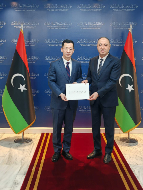 2026年2月22日,新任驻利比亚大使马旭亮向利比亚民族统一政府外交与国际合作部代理部长塔希尔递交国书副本。
