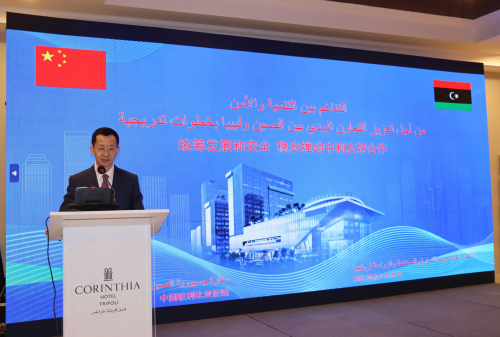 2026年4月12日,驻利比亚使馆举办“统筹发展和安全 稳步推动中利友好合作”座谈会,驻利比亚大使马旭亮,利外交部、内政部、央行、中利企业人士近百人出席。