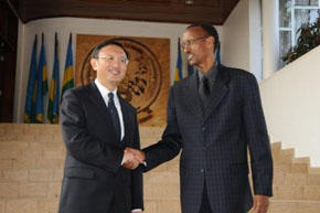 访问期间,杨洁篪外长会见了卢旺达总统卡加梅。杨外长表示,中卢两国传统友谊深厚,建交38年来双边关系始终发展顺利,政治互信日益加深,各领域合作成果显著。中方将继续为卢经济社会发展提供力所能及的帮助,鼓励中国企业赴卢投资,使两国友好合作关系取得更加丰富的成果。卡加梅总统高度评价卢中关系,他说,两国在双边和多边领域都进行了很好的合作,中国为卢旺达的发展提供了宝贵支持和援助,卢方对此表示感谢,并愿不断推动两国关系发展。同时,卢旺达将为推动中非合作论坛发展和促进中非友好合作做出积极努力。