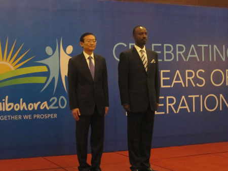 2014年7月7日,外交部副部长张明应邀出席卢旺达驻华使馆举办的庆祝卢旺达解放20周年招待会,并与卢旺达驻华大使卡勇加就双边关系及共同关心的问题交换意见。