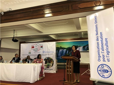 2019年10月4日上午,驻马达加斯加大使杨小茸出席中国-马达加斯加-联合国粮农组织三方南南合作技术援助项目启动仪式。联合国粮农组织驻马达加斯加代表、马农畜渔业部长、中方农业技术专家一行9人、联合国粮农组织和马政府官员以及马方项目参与人员等40多人参加仪式。