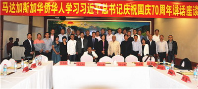 2019年10月13日,马达加斯加华侨华人举行座谈会,学习习近平主席在庆祝中华人民共和国成立70周年大会上的重要讲话。驻马达加斯加大使杨小茸、马达加斯加华侨华人代表等150余人出席。