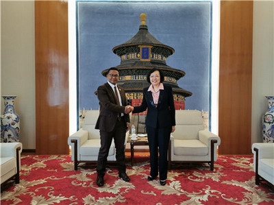 2019年10月16日,驻马达加斯加大使杨小茸会见马国民议会议员、马中友好小组主席尼赫那先生。