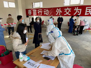 2021年6月9日,“春苗行动”在马达加斯加正式落地。当日,在马中国同胞接种第一剂国产新冠疫苗,驻马达加斯加大使郭晓梅前往疫苗接种点看望接种人员。