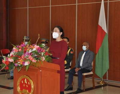 郭晓梅大使在致辞中称,中国人民解放军诞生于中国人民争取民族独立与解放的战火硝烟之中,同时期的马达加斯加人民也在积极争取民族解放。相似的经历让两国人民深知和平可贵、发展不易。中方始终秉持真实亲诚对非政策理念和正确义利观,坚定不移地推进中国与包括马达加斯加在内的非洲国家友好合作。当前,百年变局与世纪疫情凸显了构建人类命运共同体的重要性和紧迫性。同为爱好和平和肩负发展重任的发展中国家,中马两国长期保持友好合作,政治互信不断加深,各领域合作持续巩固发展。希望中马携手努力,深化两国全面合作伙伴关系,共创双边关系新局面。