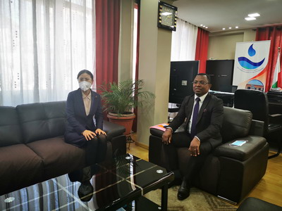 2021年9月7日,驻马达加斯加大使郭晓梅拜会马新任水务和清洁部长拉库通德拉扎卡。