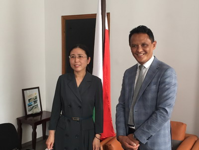 2021年9月17日,驻马达加斯加大使郭晓梅拜会马总统府新城和住房国务秘书安德里亚马努希苏阿。