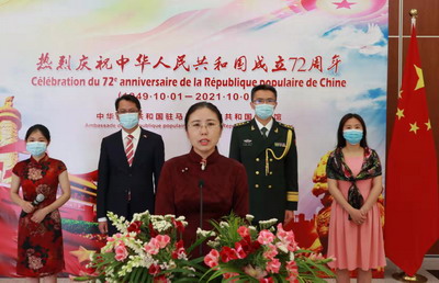 2021年9月28日,驻马达加斯加使馆举行线上国庆招待会,庆祝中华人民共和国成立72周年。驻马达加斯加大使郭晓梅和马外交部长帕特里克发表视频讲话。马政界高官、各国驻马使节与国际组织负责人、在马中资机构与华侨华人代表、媒体记者等在线参加。