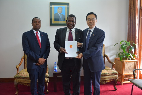 2016年4月7日,新任驻马拉维大使王世廷拜会马拉维外长沙蓬达,向其递交国书副本。