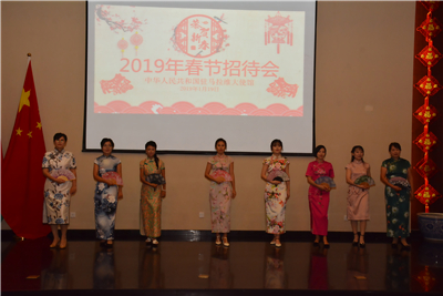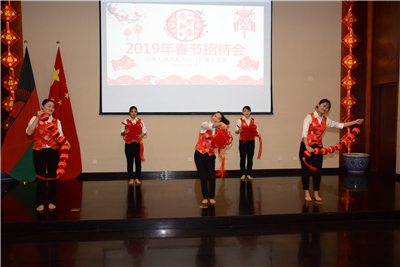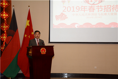 2019年1月19日,驻马拉维大使刘洪洋在使馆举行2019年春节招待会,旅马华侨华人、中资企业、医疗队员、汉语教师代表及使馆工作人员等200余人欢聚一堂,喜迎中国农历己亥猪年新春佳节。
