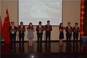 招待会上,当地华商会、中资企业商会、医疗队、孔子学院和使馆工作人员分别表演了独唱、合唱、诗朗诵、相声和旗袍秀等文艺节目,博得现场来宾阵阵欢呼与喝彩。