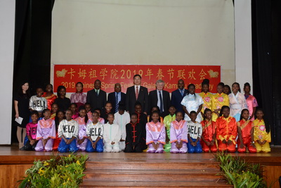 2019年2月2日,驻马拉维大使刘洪洋应邀作为主宾出席卡姆祖学院2019年春节联欢会。马东部地区教育局长代表查尔斯、卡姆祖学院校长安德鲁·王尔德及学校师生等逾200人参加活动。