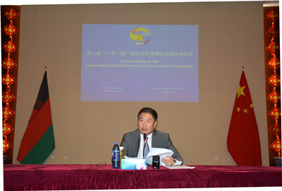 2019年4月23日,驻马拉维大使刘洪洋就即将召开的第二届“一带一路”国际合作高峰论坛举行媒体吹风会。马拉维国家广播电视台、马拉维通讯社、《国民报》、《每日时报》、佐迪亚克电台、首都电台等媒体20余名记者与会。