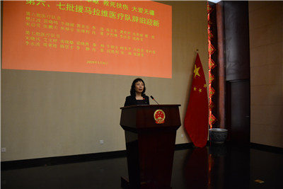 第六批医疗队长樊江波代表第六批医疗队总结了过去一年在马各项工作情况,汇报了在医疗工作、义诊活动、对外宣传等方面取得的成绩,对国家卫生健康委、陕西省卫生健康委和驻马使馆对医疗队工作的大力支持表示衷心感谢。