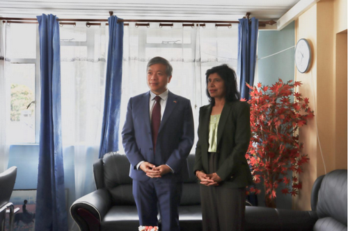 2022年8月18日,驻毛里求斯大使朱立英赴毛里求斯国家图书馆调研,并与拉姆诺特馆长就加强文化交流合作等话题交换意见。