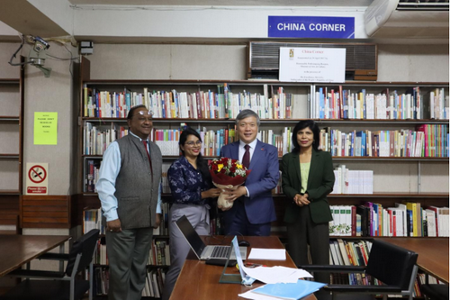 在拉姆诺特馆长的陪同下,朱大使参观了毛国家图书馆文献数字化部、多媒体阅览室、报纸期刊库、出版物缴存部等部门,并与各部门负责人亲切交谈。朱大使指出,文化交流合作是中毛双边关系的重要方面。“中国图书角”作为毛国家图书馆设立的首个“国家角”,不仅是毛里求斯民众了解中国传统文化与当代面貌的窗口之一,更是中毛友谊的见证。今年恰逢中毛建交五十周年,两国应以此为契机,发挥毛得天独厚的地理、人文优势,推动两国在文化、生物技术等领域的合作不断深化。