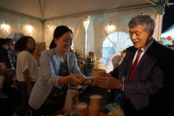 随后,朱大使为美食节敲响开幕鼓,并与现场华侨华人亲切交流。
