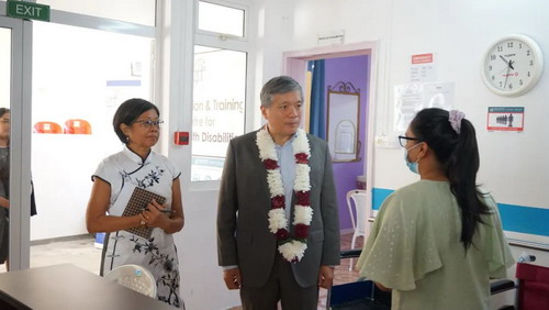 朱大使听取了彩虹基金会主席帕苏拉曼对基金会发展历程、业务范围等基本情况的介绍,并参观了基金会下设的假肢制作车间、治疗和复健中心、职业培训中心等部门。朱大使表示,中毛建交50年来,不仅两国政府间合作成绩斐然,非政府组织间的交流与合作也结出累累硕果。彩虹基金会积极引进中方先进设备和经验,为毛残疾人减轻病痛,便利残疾人日常生活,中国大使馆对此表示赞赏。近年来,使馆多次向包括彩虹基金会在内的毛慈善组织提供帮助,未来将继续尽己所能,促进毛残疾人权益保障。相信在以往密切合作的基础上,中毛民间组织间的交流合作也将取得更大进展,为两国人民带来实实在在的好处。