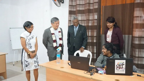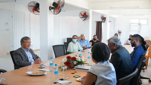 2022年9月9日,驻毛里求斯大使朱立英赴毛彩虹基金会考察调研。