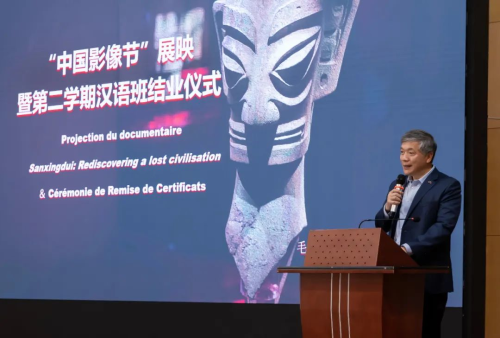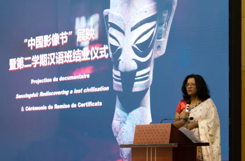 2022年11月12日,“中国影像节”展映活动暨远程汉语班结业典礼在毛里求斯中国文化中心举办。驻毛里求斯大使朱立英、文化中心主任张新红、毛教育部小学司司长古拉、毛中小学教师代表、中心远程汉语班学员及家长等八十余人出席活动并观赏了纪录片《三星堆:再现失落的文明》。
