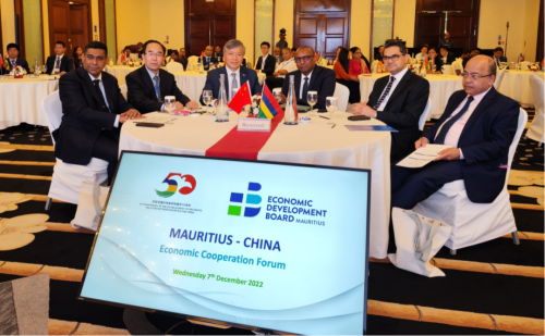 2022年12月7日,驻毛里求斯使馆同毛经济发展局共同举办“中毛经济合作论坛”。驻毛里求斯大使朱立英和毛里求斯财政和经济规划与发展部部长帕达亚齐出席并致辞。毛央行行长西戈兰、毛里求斯经济发展局执行总裁普诺萨米、外交部双边司司长毕松多亚尔,国际贸易司司长布杜,毛工商协会及企业代表、在毛中资企业负责人等共60余人参加论坛。