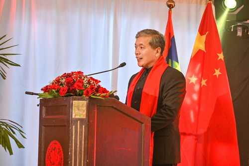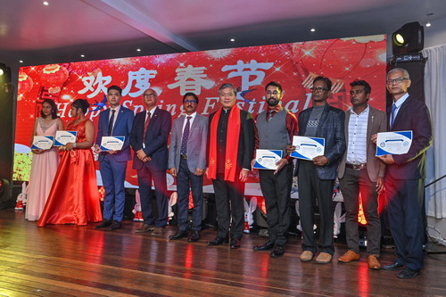 朱大使在致辞中向毛里求斯各界友人致以新春祝福,向促进中毛友好与交流、投身中毛关系发展与务实合作的人们致以诚挚敬意,并衷心感谢毛里求斯华侨华人团体为弘扬中华优秀传统文化所做努力。