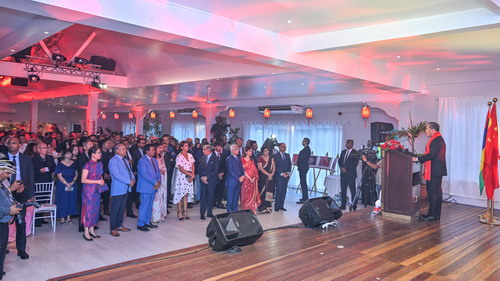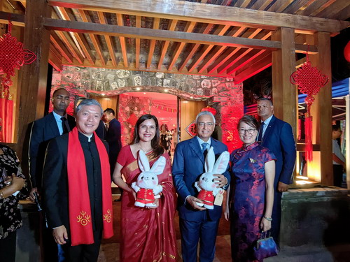 2023年1月20日,驻毛里求斯使馆在安娜庄园隆重举办2023年春节招待会,欢庆癸卯新春。应驻毛里求斯大使朱立英及夫人邀请,毛里求斯总统鲁蓬夫妇、总理贾格纳特夫妇、副总统博赛仁夫妇、议长波基尔、第一副总理奥比加杜、外长加努等多位政要和家属以及当地社会各界、驻毛使团、华侨华人、汉语教师、中资机构代表等600余人出席。