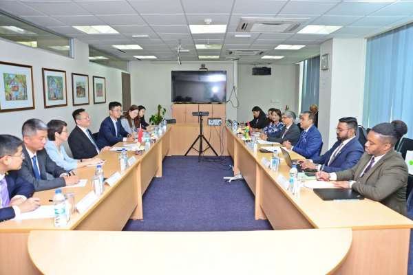 2025年10月22日,外交部非洲司司长、中非合作论坛中方后续行动委员会秘书长杜晓晖访问毛里求斯,会见兰富尔外长。中国驻毛大使黄世芳参加有关活动。