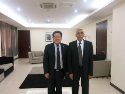 2015年7月23日,中国驻毛里塔尼亚大使武东前往总理府会见毛总理哈达明,武大使向哈达明总理介绍了中毛建交50周年招待会成功举行及中阿经贸论坛情况,感谢毛方派出由多位部长组成的政府代表团出席招待会。
